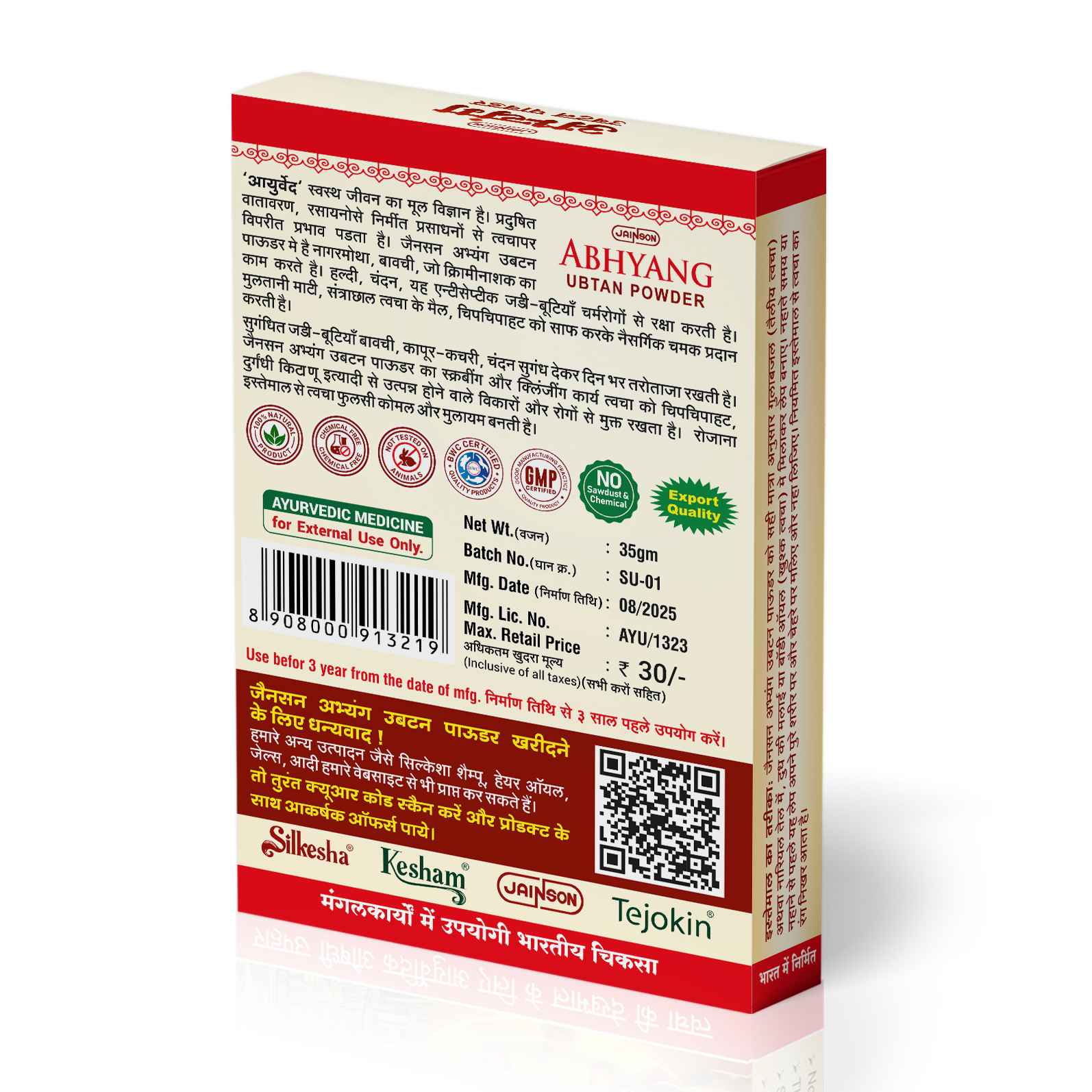 Abhyang Ubtan is an Ayurvedic body cleanser and exfoliator used during Abhyanga Snan (pre-bath body massage ritual) to detoxify, exfoliate, and rejuvenate the skin. It’s a chemical-free alternative to modern soaps, made purely with natural herbs, roots, and minerals known for their therapeutic skincare benefits.